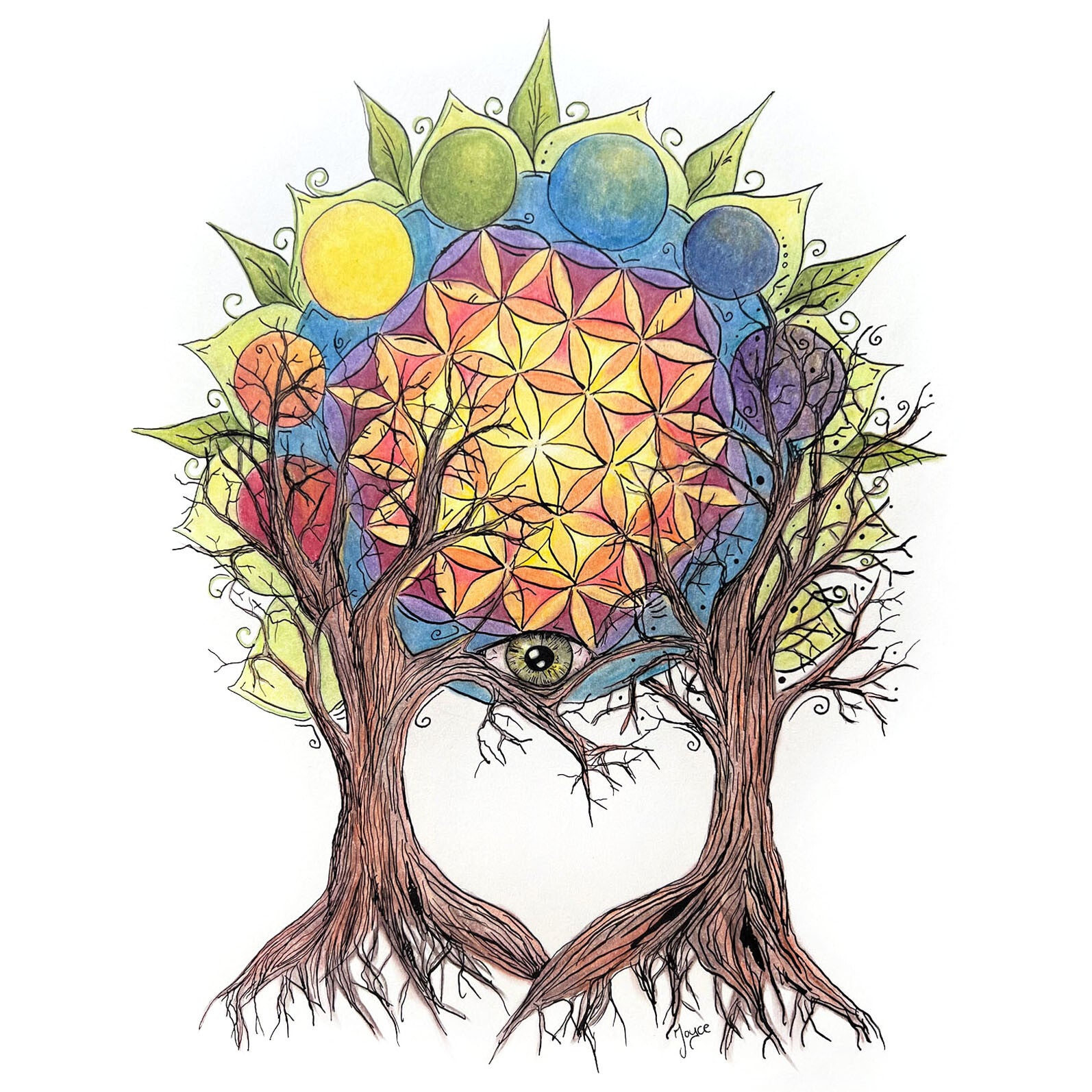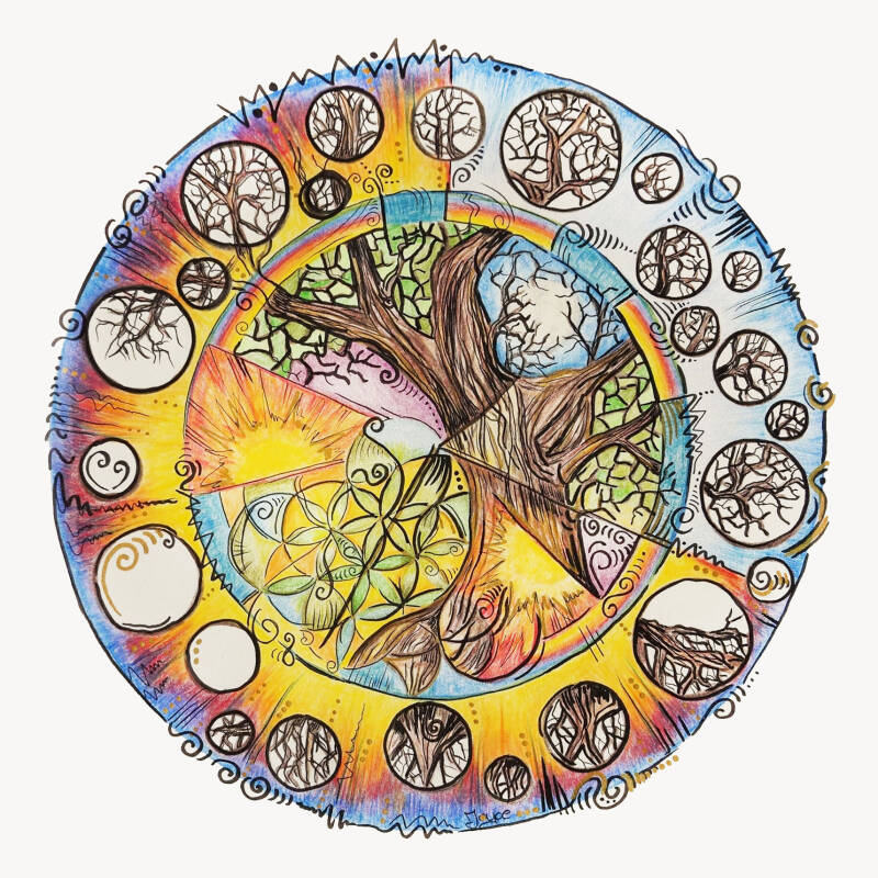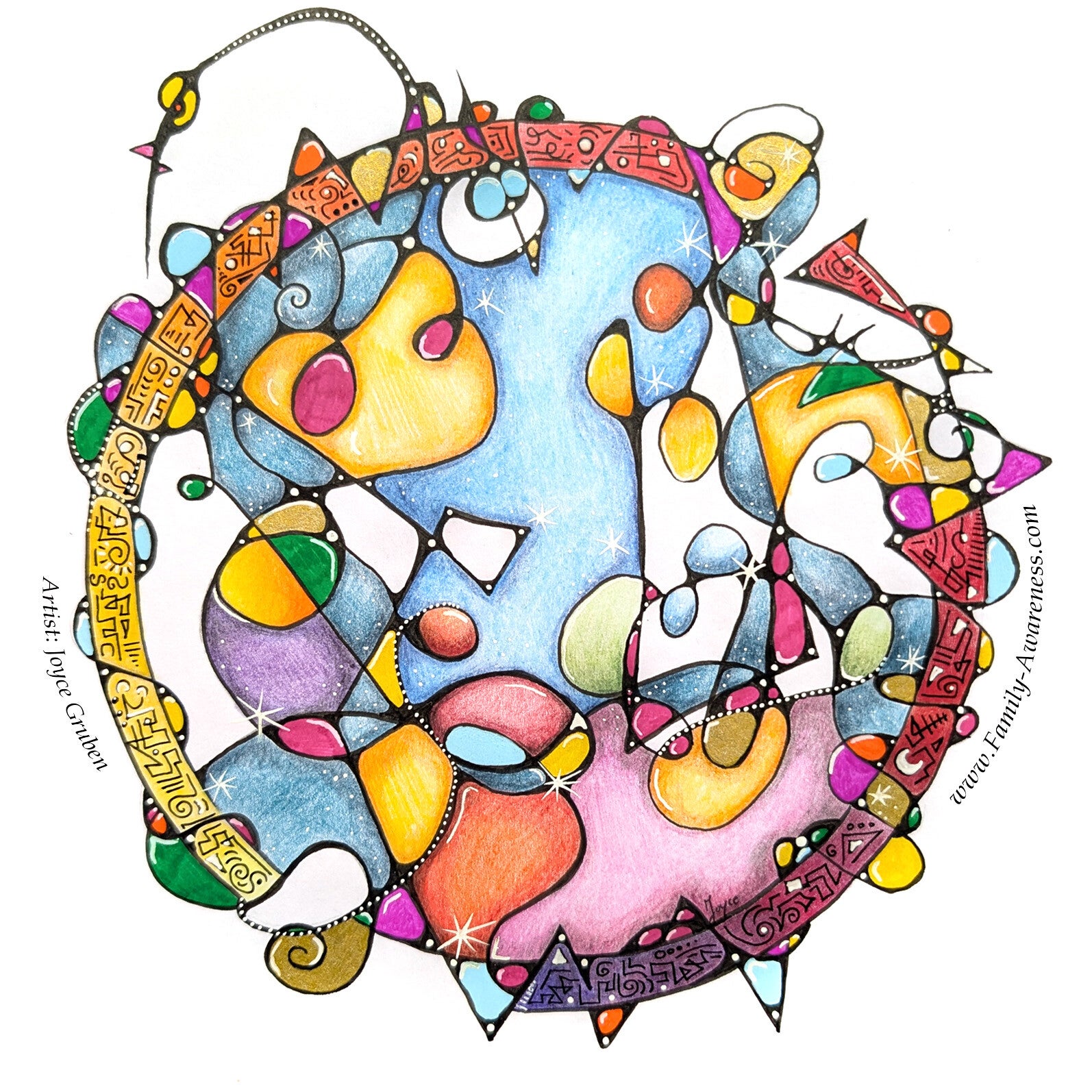 kleurpotloden, passer, geo: Joyce Gruben, velen ook gemaakt tot kaarten en boekenleggers en grote prints en te bestellen in de webshop!