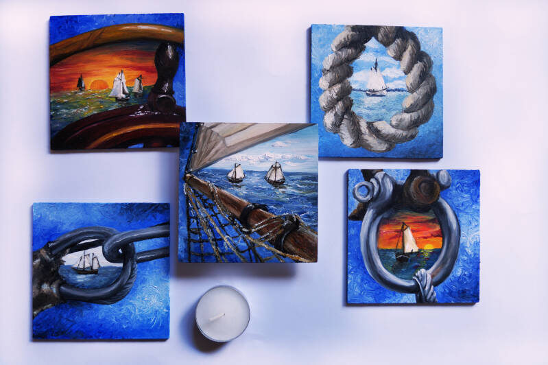 Schilderijen kunnen in opdracht gemaakt worden of je kan vragen wat er op het moment staat!