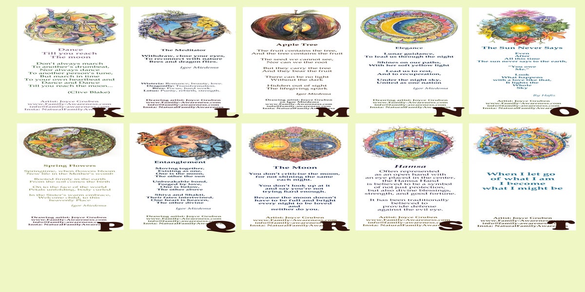 Hieronder de verhalen, gedichten, quotes op de kaarten: