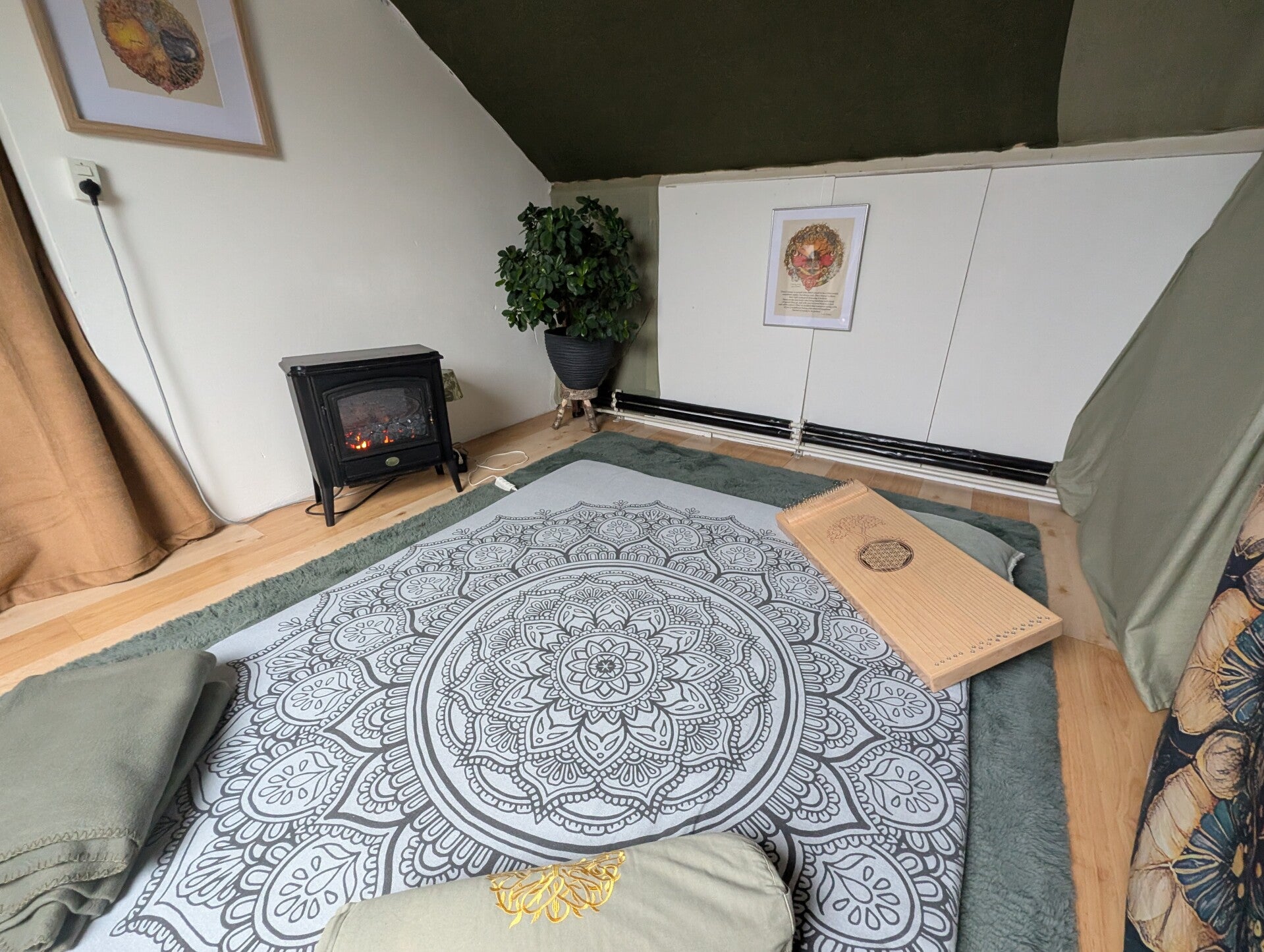Ik begeleid de yin yoga vaak met muziek instrumenten zoals: steeldrum, handpan, Nada Tarangini, Koshi, Native flute, kalimba, gong.